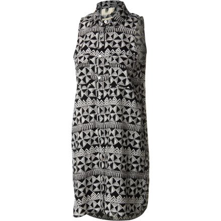 Quiksilver women's "sketchy squares shirt dress" serena print sleeveless button up dress. 35" hps body length.