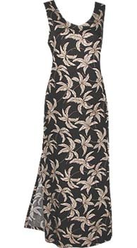 Typhoon - Hawaiian Long Tank Dress in Black with Khaki Trees-S