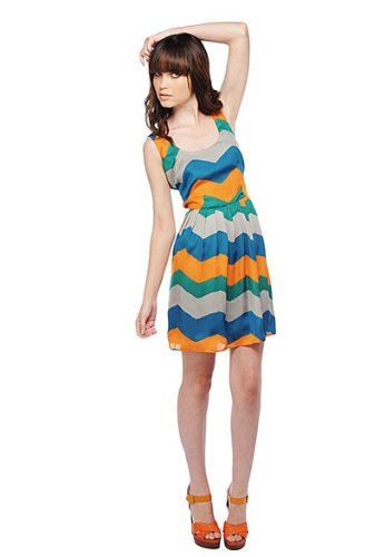 The Maggie Dress in Electric Orange by BBDakota. An adorable crossover back dress with a fitted bodice and breezy gathered skirt. Perfect for spring with its painterly zigzag print and silky fabric, you'll want to wear this one every day!