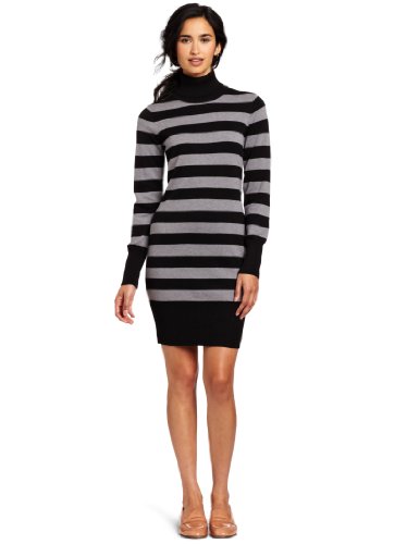 - Sweater dress with rib at the waist, neck and at the sleeve with horizontal stripes for a more slimming figure