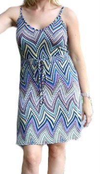 Envi Unique Zig-Zag Blue Print Spaghetti Strap Dress with Front Tie, X-Small