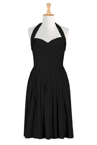Figure-enhancing seams define our feminine fifties inspired dress with halter straps, a sweetheart bodice, wide curved waist and a pleated skirt.