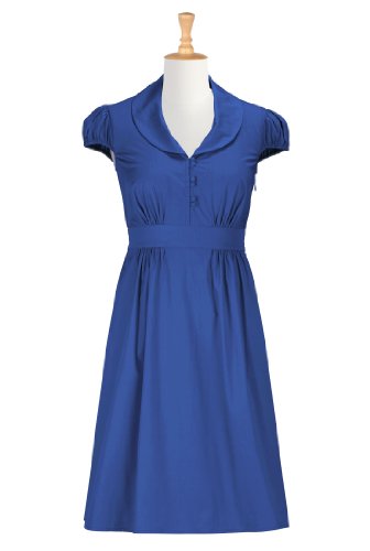 eShakti Women's Shawl collar poplin shirtdress 1X-16W Tall Royal blue