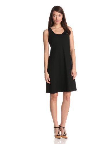 Tank dress in black. Sleeveless, scoop neck, pull on, no closures, wear to work.