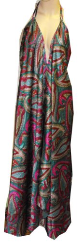 100% polyaster feel like silk BEAUTIFUL VINTAGE INDIAN one size fits most Style: long long flufy beautiful! hand wash cold cool iron few ways to wear