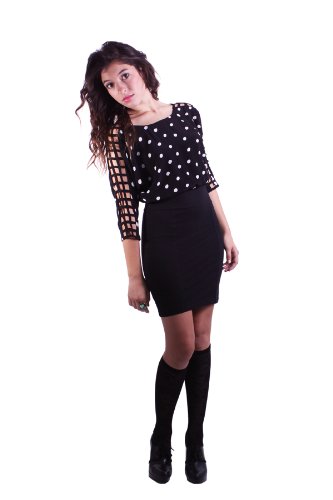 Motel has hit it again with this amazing dolman sleeved dress! The large white dots gleam out of this fab black dress. With its wide neck, stretch skirt and cotton blend, this dress is comfortable and sexy at the same time.