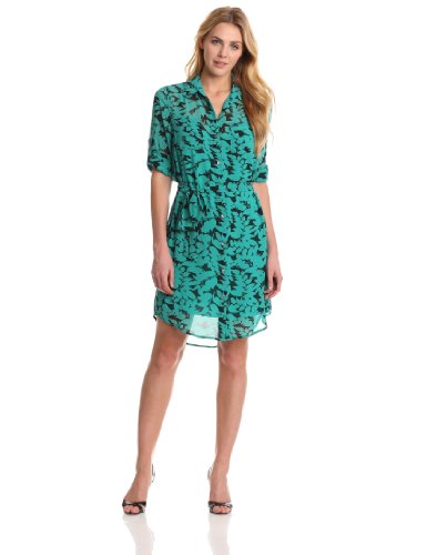 DKNYC Women's Long Sleeve Button Thru Shirt Dress With Self Belt, Verdan Green, X-Large