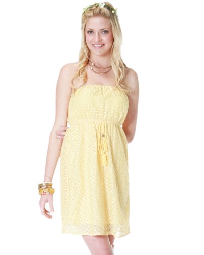 Flying Tomato Women's Embroidered Eyelet Tube Dress Medium Yellow