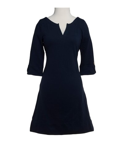 Hatley Women's Solid Long Sleeve Knit Dress, Nauty Navy, Medium