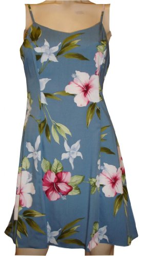Hibiscus Summer Hawaiian Dress - Womens Hawaiian Dress - Aloha Dress - Hawaiian Clothing - 100% Rayon Blue Large