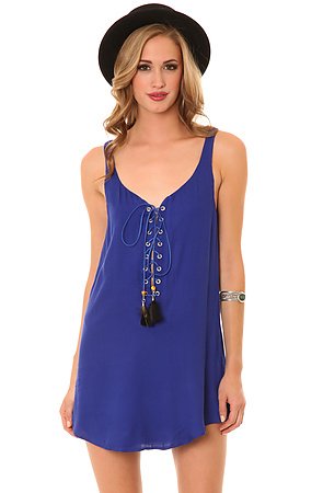 Huntingbird Women's The Inca Lace Up Dress. The Huntingbird Inca Lace Up Dress in Ultramarine Get back to nature in one of these extremely cute and mildly tribal dresses perfect for any occasion featuring a the lace up on the front with leather cord coming to a finish with beads and feather designs. 8 Notch Lace Up Front Leather Cord Beads and Feather with Lobster Clasp Attachment 100% Cotton Veiling 100% Polyester Lining Imported By Huntingbird S ize & Fit Model is wearing a size Small Our Model Kaci is 5'10 with a 32 Bust, 25 Waist and 34 Hips.
