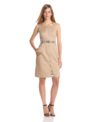 Nine West Dresses Women's Belted Sleeveless Shirt Dress, Khaki, 12