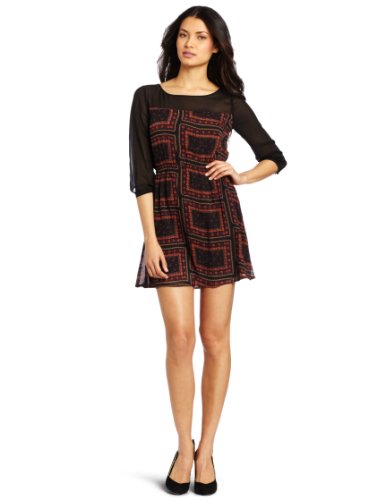 QSW Women's Maple Gardens Dress, Black With Print, Medium