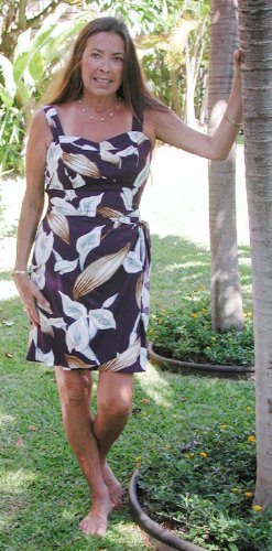 Sarong Sundress - Calla Lily Bralette Top Elastic Back Side Tied Hawaiian Aloha Faux Sarong Sun Dress in Eggplant Purple - XS