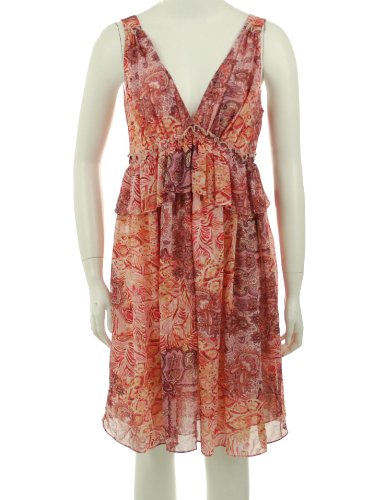 Women's ligthweight dress featuring a v-neck, sleeveless with elastic at empire waist. Fully lined.