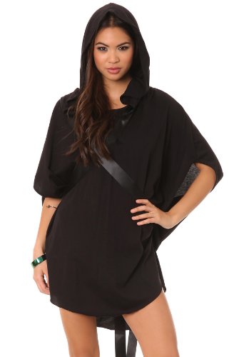 Widow Women's The Shadow Harness Dress with Removable Hood. The Widow Shadow Harness Dress with Removable Hood in Black An eerie yet comfortable tunic featuring a detachable hood, the Shadow Dress is perfect for a chill night out. Try pairing this dress with distressed leggings or lace tights for the ultimate look. All you need is a partner in crime, and you're good to go! Drape tunic dress with removable hood and satin harness belt detail Machine wash 50% cotton, 50% modal Imported By Widow Size & Fit Model is wearing a size Small Our model Amanda is 5'7 tall with a 32 bust, 24 waist, and 33 hips.