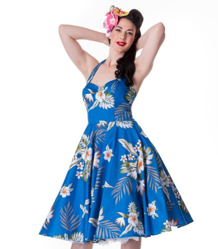 Hell Bunny 50's Alika Tropical Hawaii Dress Blue - L = 10 (US), 14 (UK)