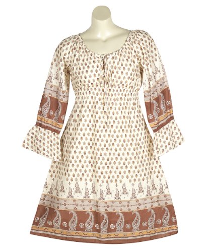 Get colorful in this long sleeve dress with elastic creating ruffle edge. Lace up keyhole, round neck is elasticized (can be worn off the shoulder). Smocked elastic at waist. Lined, ruffle hem has side slits. Elastic under the bustline allows for a lot of stretch. Up to 6" more than listed in the size chart. Material: 100% cotton. Origin: Made in India. Cleaning:Hand Wash. Fit Guide:Size 1x measures: 44" bust, 43" waist, 48" hips.
