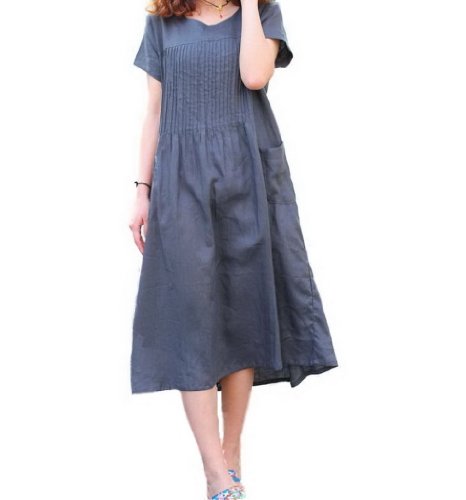 Zeniche Pleats Front Linen Dress-gray-l