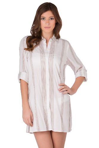 Tommy Bahama Marina Stripe Shirt Dress - White/Taupe - XS