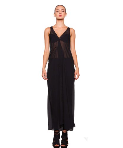 Lily Wang Women's Lesli Sheer Chiffon Long Dress Black M