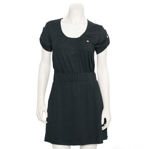 Mia Melon brings a staple wardrobe piece in this black women's designer dress. Short sleeve dress has the ultimate casual to party-perfect pleating at center of neckline which is ultra flattering. Back waist opening exudes a very feminine style. Back of dress is complemented at top with seven buttons/faux closure finish. Wide elastic band is sewn in in at waistline. Buttons feature a natural wood finish.