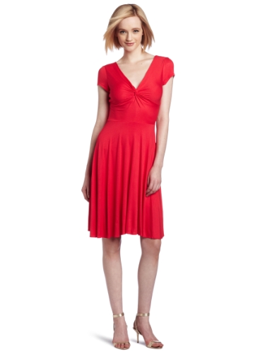 BCBGMAXAZRIA Women's Ritz Short Sleeve Twisted Bodice Dress, Red Berry, Large