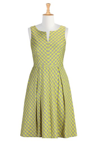 eShakti Women's Retro style gingham check dress L-14 Regular Lime green/gray
