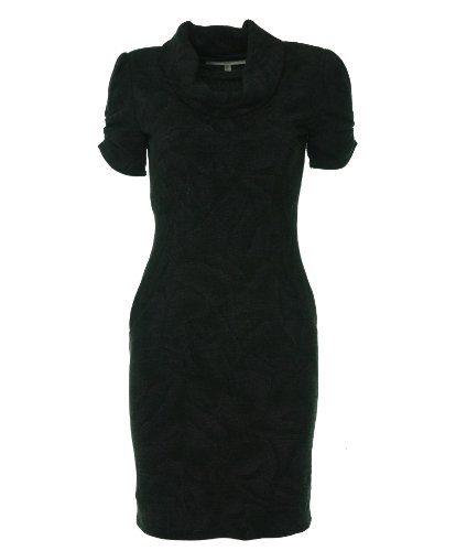 Evan Picone Cowl Neck Short Sleeve Dress Black/Plum 8P