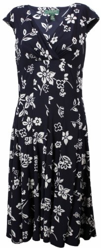 Lauren Ralph Lauren Women's Deauville Jersey Print Dress 4 Navy/White [Apparel]