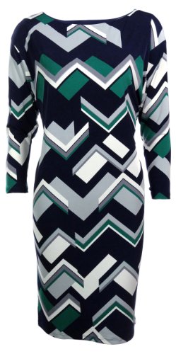 Lauren Ralph Lauren Women's Geometric Print Jersey Shift Dress (8, Navy/Emera...