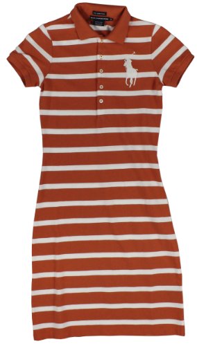 Ralph Lauren Sport Women's Big Pony Striped Skinny Polo Dress (Orange/White) (X-Small)