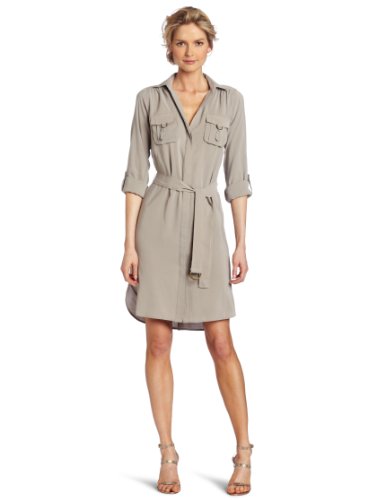 Suzi Chin Women's V-Neck Shirt Dress, Sand, 10