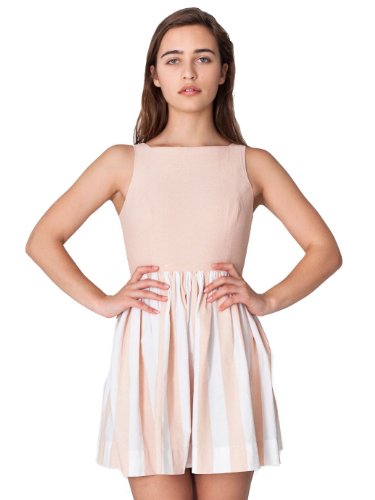 American Apparel Stripe Chambray Sun Dress Small Peach White Stripe