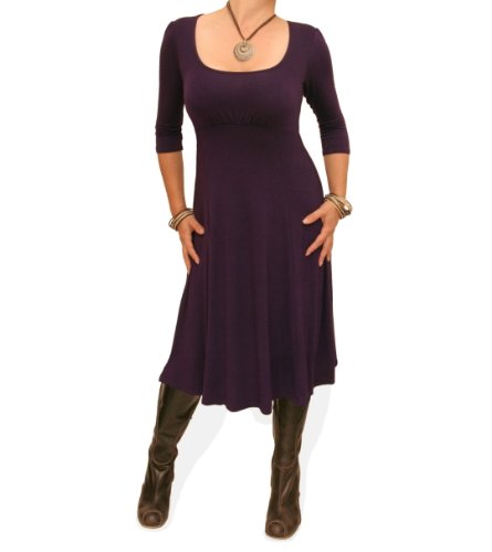 - Fully lined three quarter sleeve A line dress made from soft stretch fabric. Scoop neckline and small keyhole feature back.