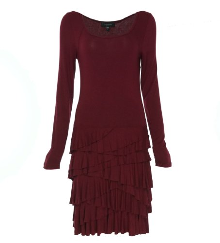 Karen Kane After Dark Ruffle Dress Bordeaux Small