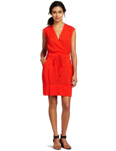 Kenneth Cole Women's Petite Smocked Waist Pullover Dress, Flame, Large