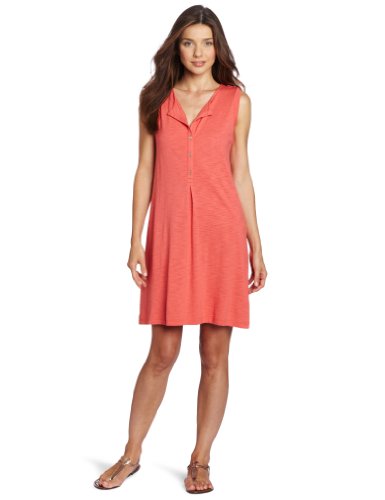 Lilla P Women's Flame Modal Tab Shoulder Henley Dress, Sunset, Large