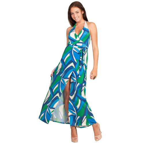 The Nikki Poulos Jamie Halter Maxi Wrap Dress will slip right on and fit like a glove. An easy, one-piece outfit, put it on and you are ready to go, looking ultra glamorous and boho chic!