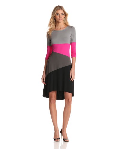 Nine West Dresses Women's Scoopneck Long Sleeve Colorblock Hi Lo Hem Dress, Shocking Pink Combo, 6