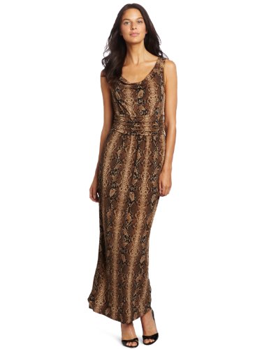 Vince Camuto Women's Drape Neck Snakeskin Maxi Dress, New Camel, Medium