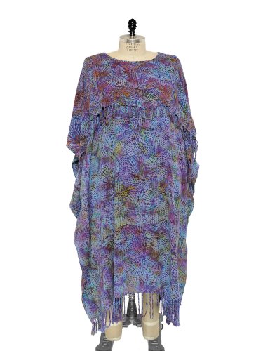 WeBeBop Plus Size Purple Batik Beads Print Fringe Caftan Dress