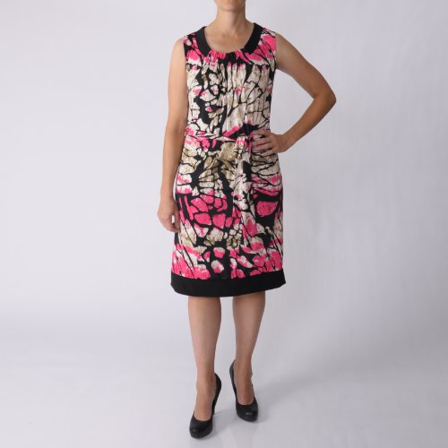 This tank top dress from S Max by Adi is the perfect choice for warm weather occasions. Unique abstract print adds a modern twist to this classic jersey knit dress. Missy apparel boasts a gathered neckline. Measurement taken from size small. Please note that measurements are approximate and may vary by size.