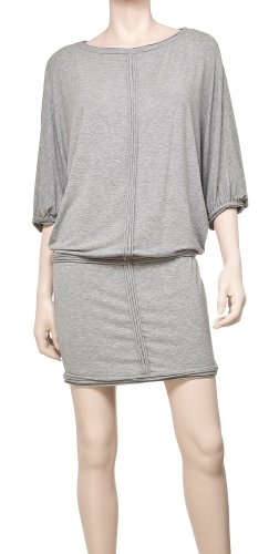 This heathered wool jersey dress has an incredibly chic and nonchalant look The silhouette with its high neckline billowy dolman sleeves slight blouson waist and fitted bottom flaunts curves without being constricting Rawedged appliqu trim crosses the body adding textural interest and flattering lines Wear this comfortable piece with tights and leather booties or layered over skinny jeans and leggings Fits true to size Maxstudio