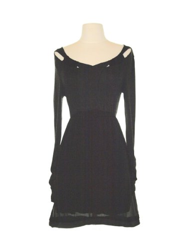 Saga Boutique Black & Gray Womens Long Sleeve Dress-M,Black