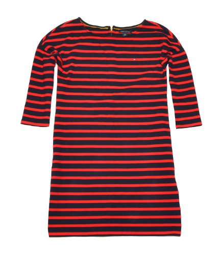 Tommy Hilfiger Women Fashion Boat Neck Striped Logo Dress (XL, Navy/red)