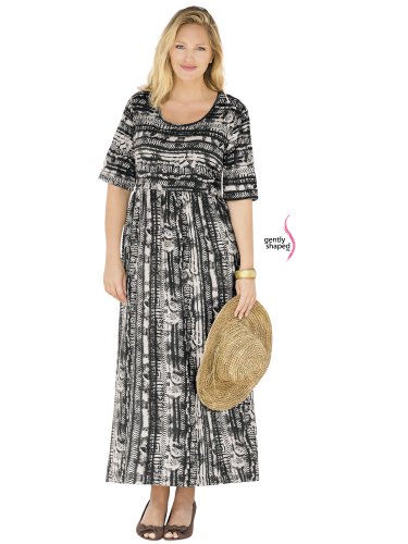 Our Gently Shaped Collection offers new options designed to complement your womanly proportions. We flatter your curves with beautiful styles created to follow your figure's contours. Abstract animal designs, geometrics and multiple patterns combine in this two-way directional dress. Scoop neckline, empire waistline gently shapes your silhouette with soft gathering below. Shaped A-line fit. 100% cotton. Machine wash. Imported. Length: 51".