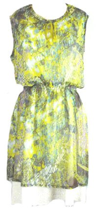 Women's Kische Green Multi Python Print Chiffon Dress (Small)