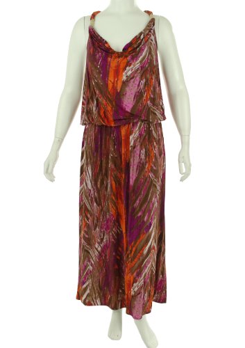 Dress features a cowl neck, sleeveless with braided straps and t-bar in back.