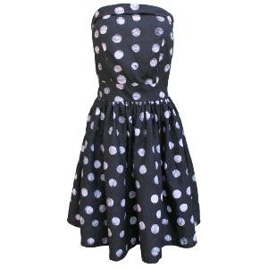 Fair Trade Strapeless Dress - Floral or Polka Dot (Large 12-14, Black Polka Dots)